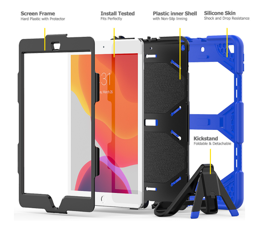 Heavy-Duty Shockproof Tablet Case – iPad 7th, 8th & 9th Gen (10.2") Built for protection and style, this rugged tablet case is designed to handle drops, bumps, and daily wear. Combining a tough triple-layer structure with bold color pops, it’s the perfect mix of durability and modern design.
