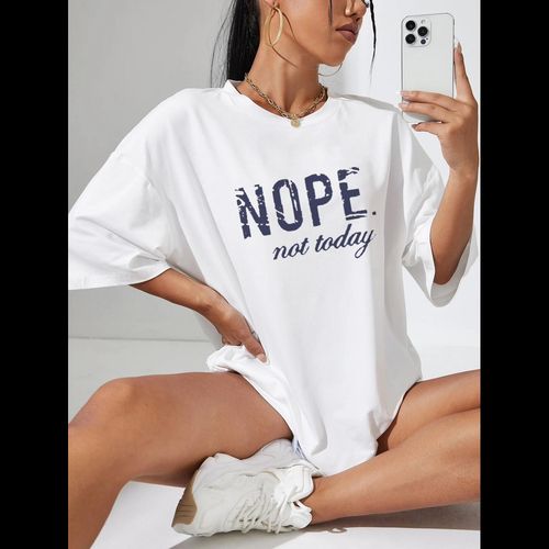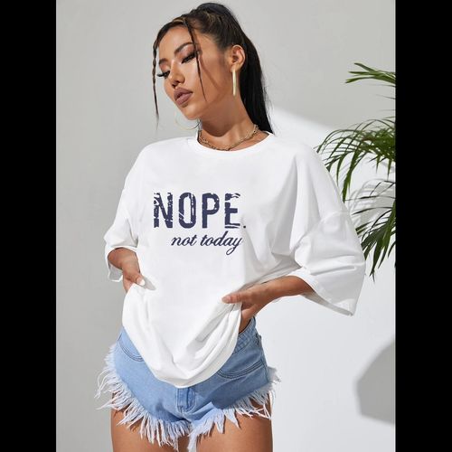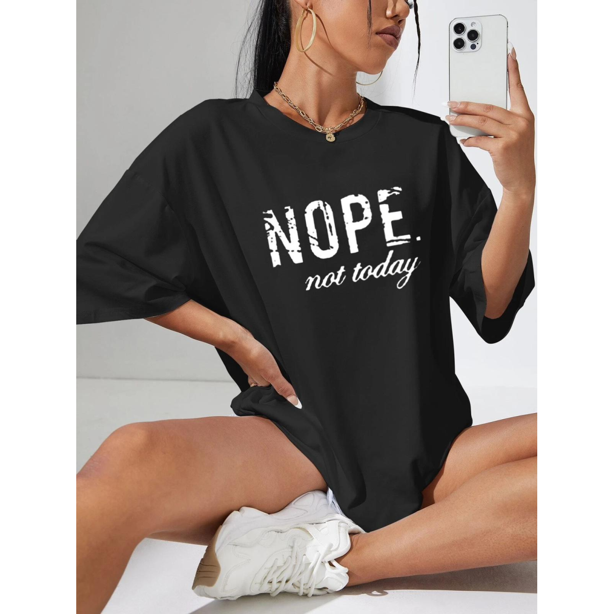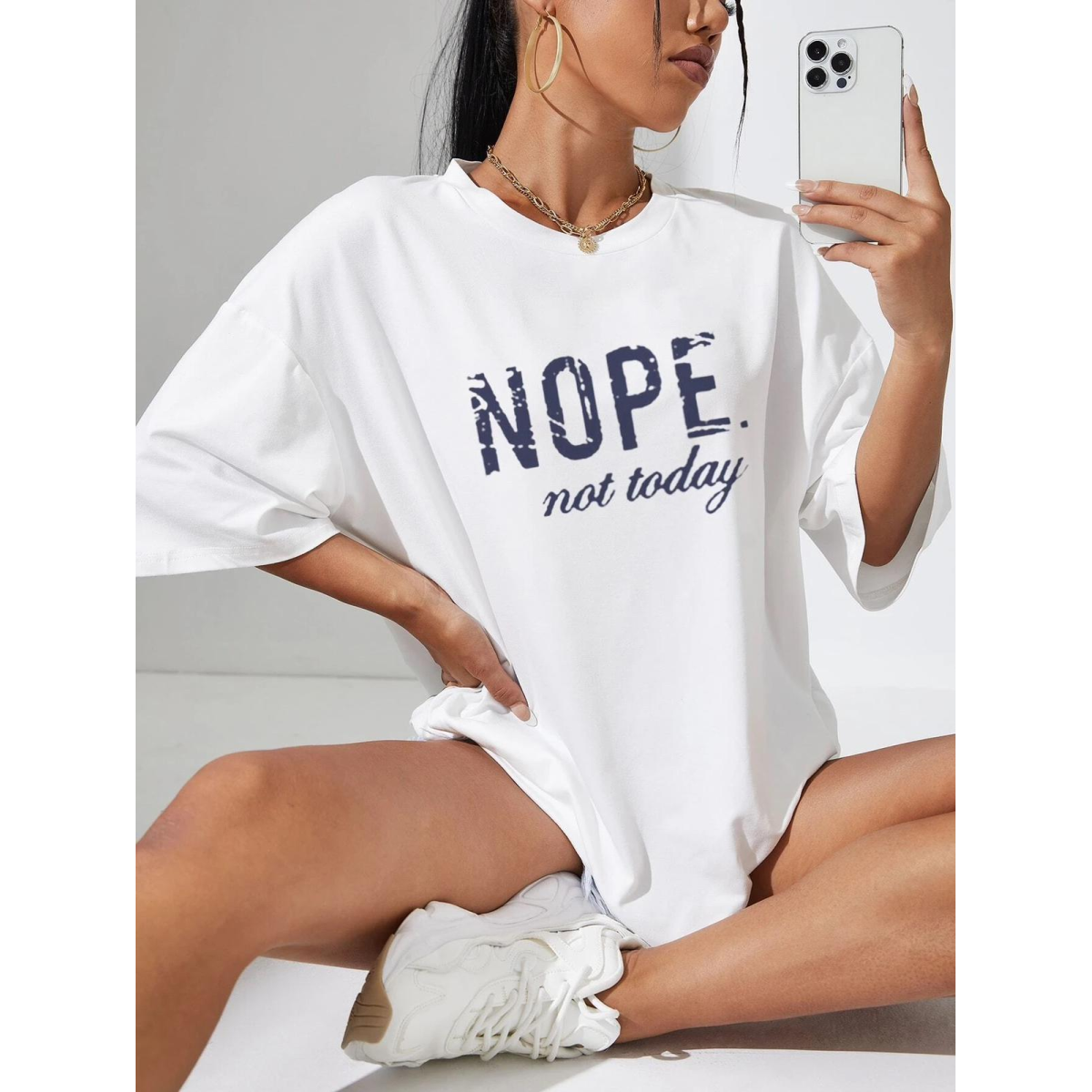 Ladies Oversized Nope Not Today Identical Graphic Print Short Sleeves T Shirt Top
