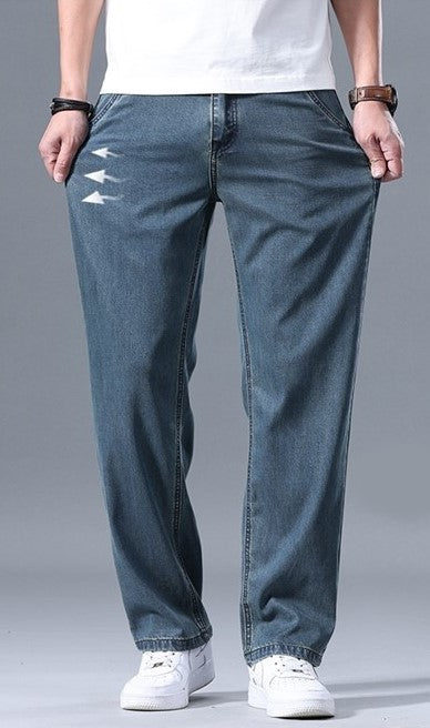 - Men's Loose Straight Casual Lyocell Jeans Stay cool and comfortable with these men’s loose straight jeans, crafted from a Lyocell-infused denim blend for a lightweight, breathable feel.