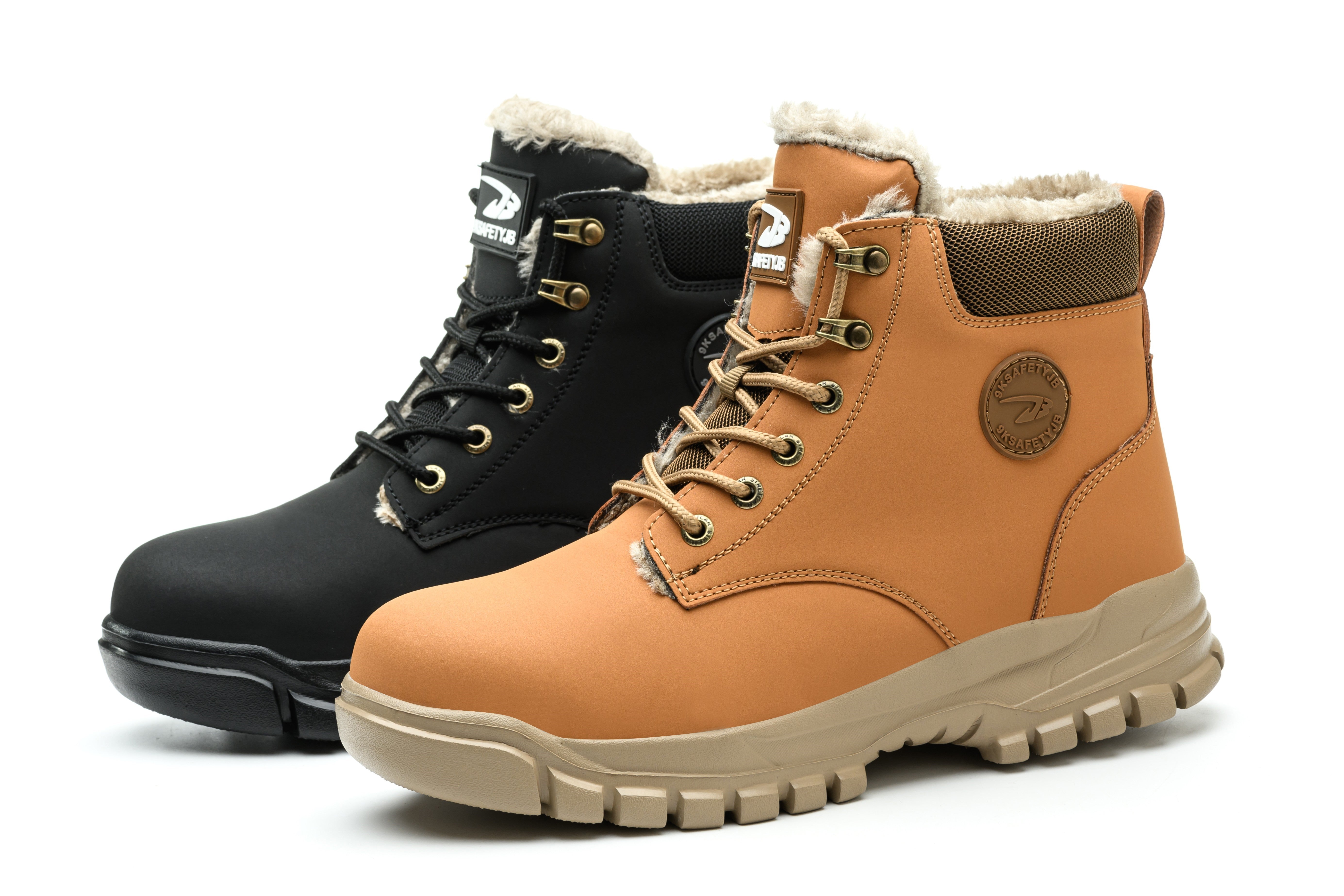 • Key Features Steel Toe Protection: Reinforced toe cap shields against falling objects and heavy impacts Durable Outer Material: Wear-resistant and tear-resistant for long-term use Anti-Slip Rubber Outsole: Provides reliable traction on slippery or uneven surfaces Breathable Mesh Lining: Keeps feet dry and comfortable with effective moisture control Elastic Insole: Shock-absorbing, high elasticity for all-day wear Warm Fur-Lining: Insulates against cold weather, ideal for winter use Multifunctional Design: Suitable for industry, construction, logistics, or outdoor work Style: Fashion meets functionality — protective yet practical Product Details Upper Material: Wear- and tear-resistant synthetic material Toe Protection: Steel toe cap Lining Material: Breathable mesh with fur lining for warmth Insole: High-elastic cushioning for shock absorption Outsole: Anti-slip rubber for grip and stability Functions: Waterproof, wear-resistant, anti-smash, non-slip, shock-absorbing, warm Style: Safety boots / Snow boots / Outdoor work boots Gender: Male Ideal For: Construction, industry, logistics, outdoor winter work, or any high-risk environment requiring warmth and protection.