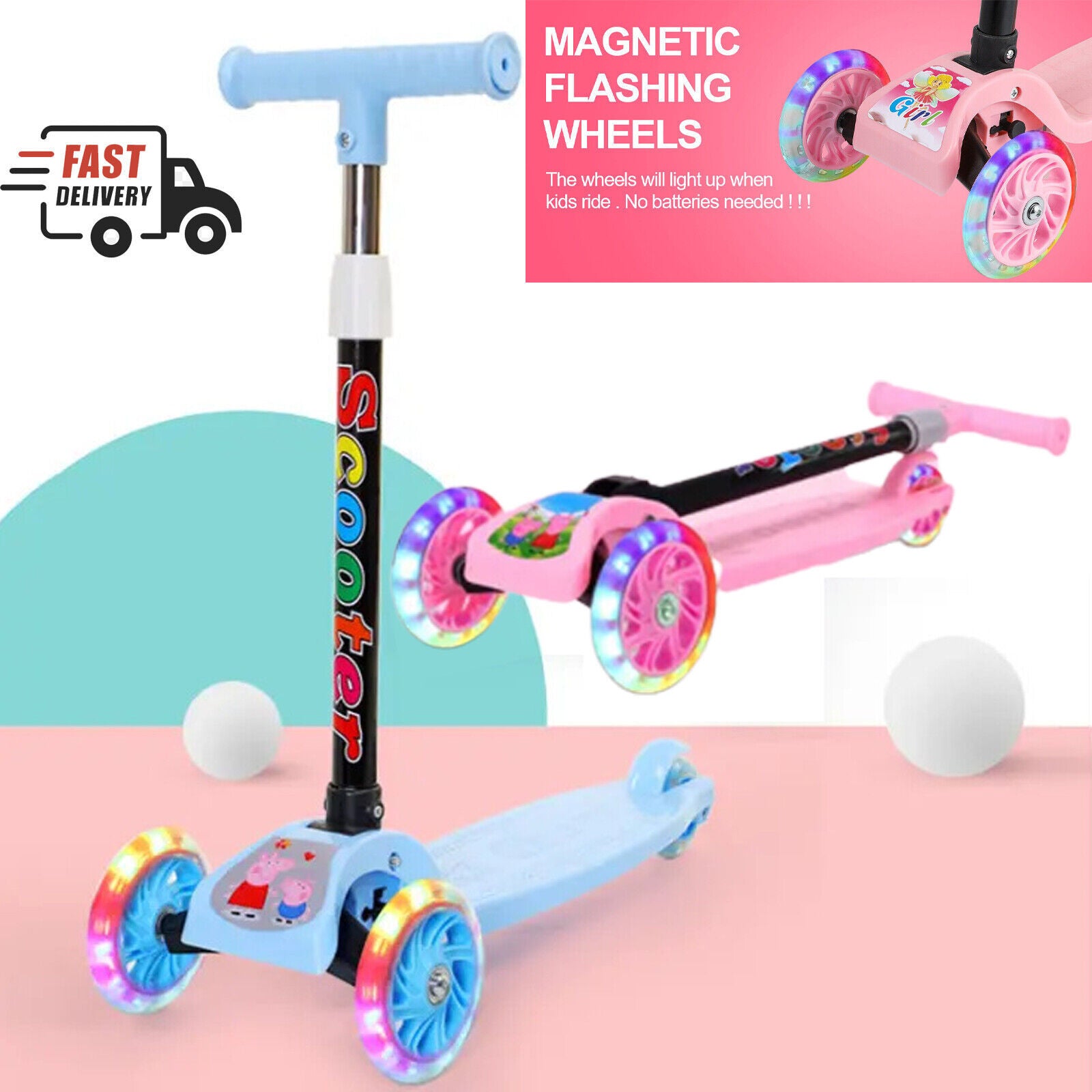 Kids Scooter 3 Wheels Kids Kick Push Flashing Led Light Up Adjustable