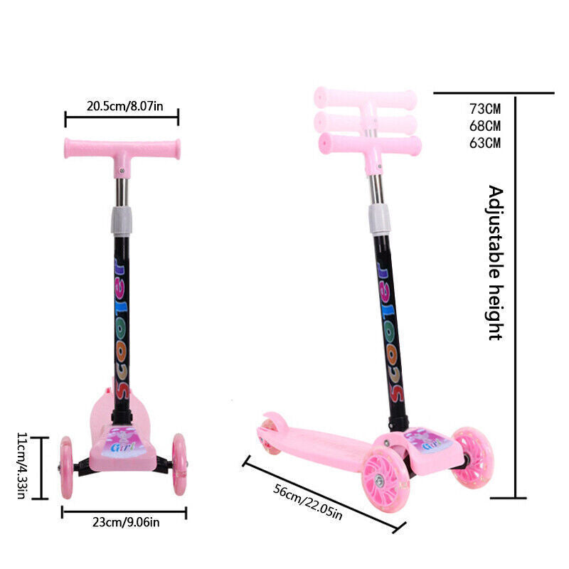• Kids 3-Wheel LED Scooter – Adjustable Kick Scooter with Flashing Lights Make outdoor play exciting and safe with the Kids 3-Wheel LED Scooter.