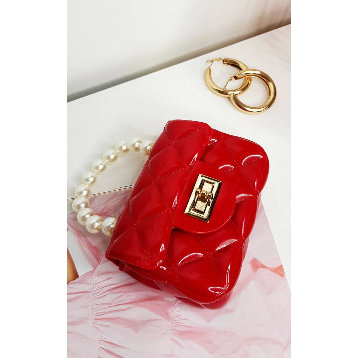 • Product Details: Style: Fold Over Bag Material: Plastic Colour: Red Features: Padded texture, pearl handle, buckle clasp UK Sizes About Women’s Fashion Women’s fashion is all about combining individuality with timeless style.