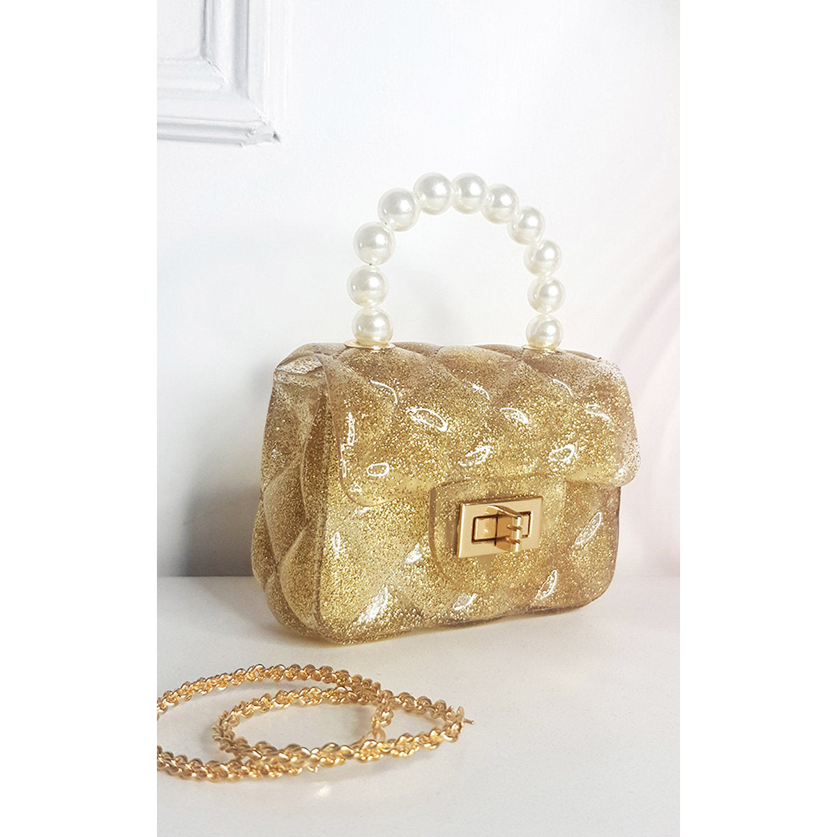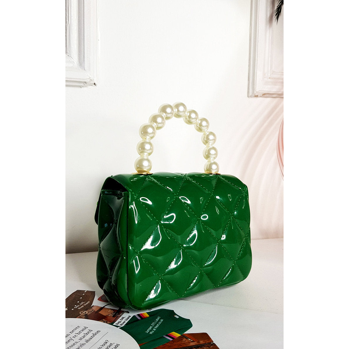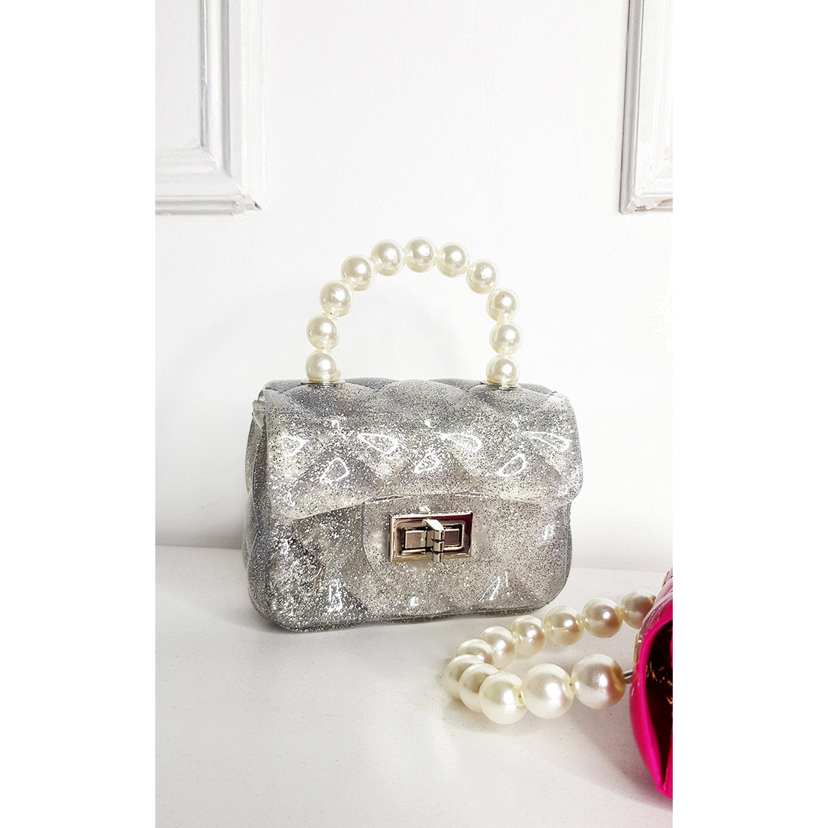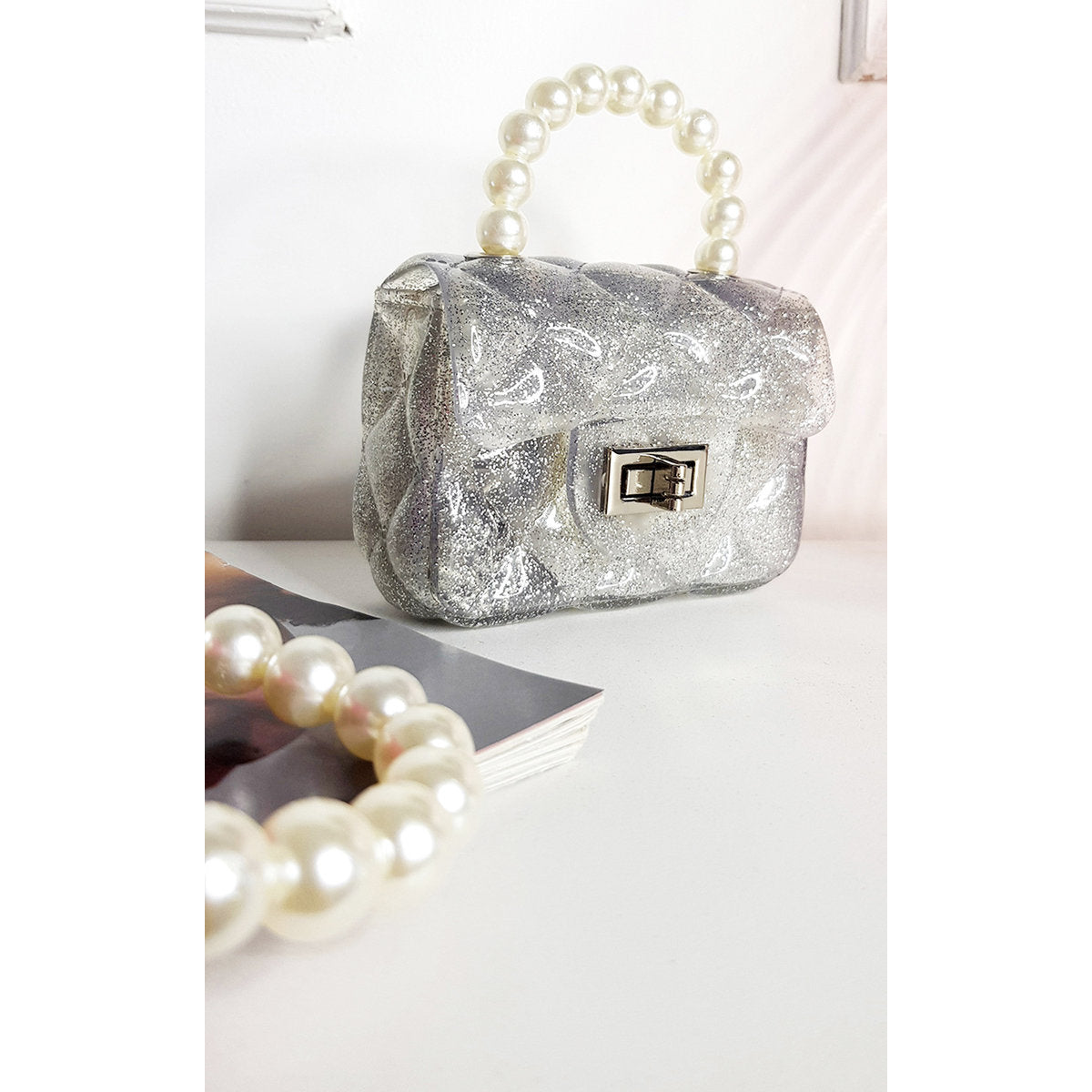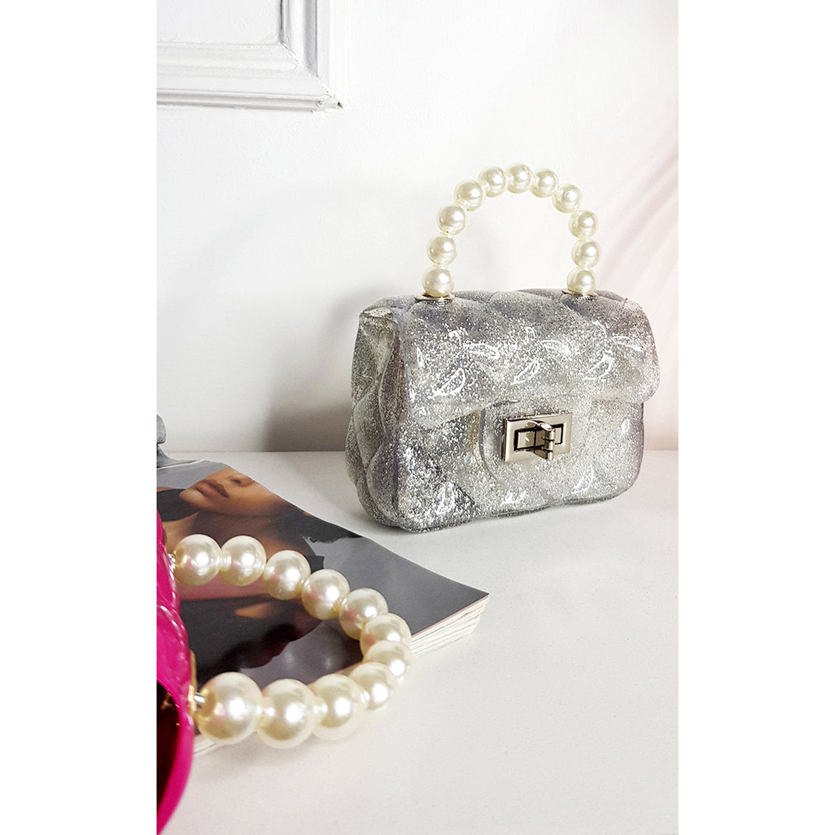 • The standout feature is the pearl handle, adding a statement finish that elevates any outfit.