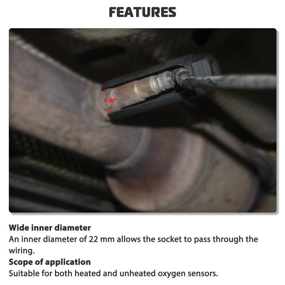 • Key Features Perfect Fit – 22mm (7/8") size with 1/2" drive fits most heated and unheated O2 sensors.