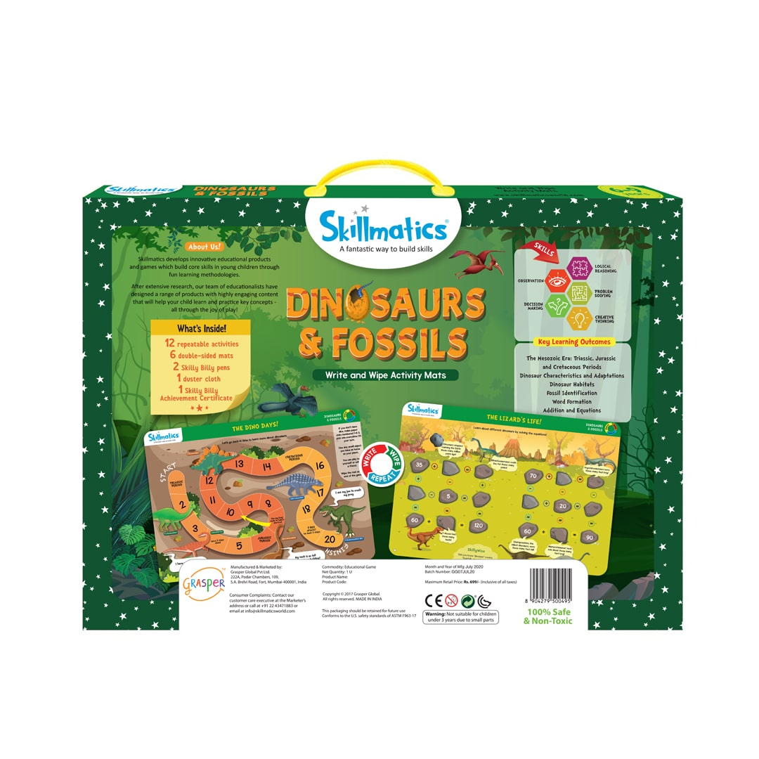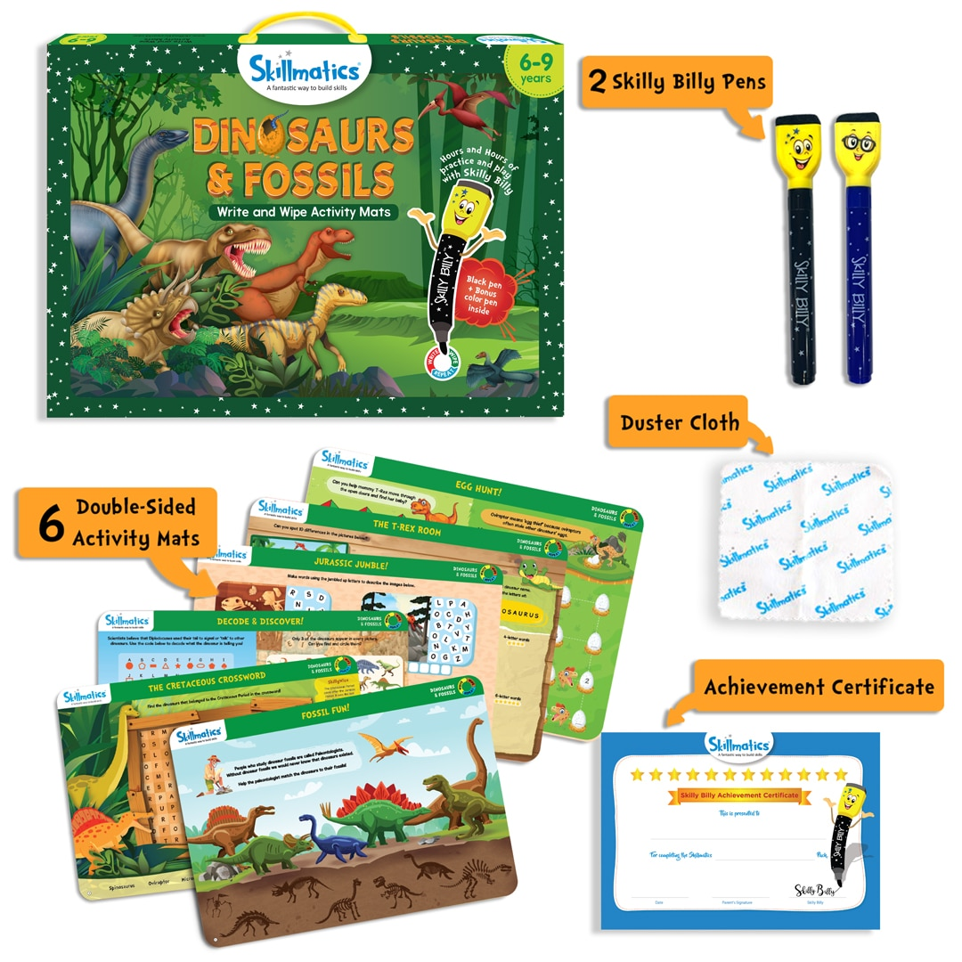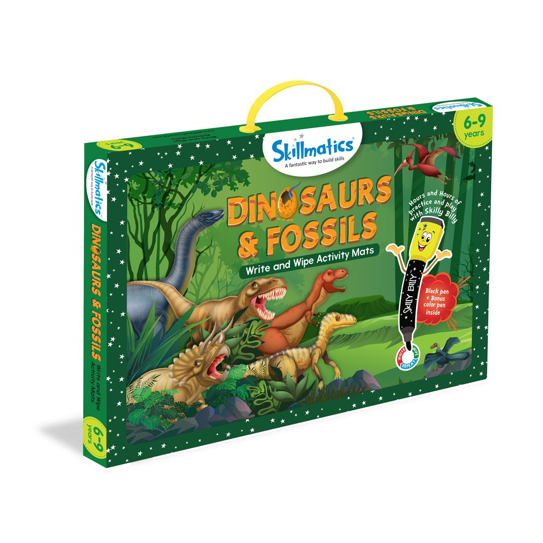 • Skillmatics Educational Game – Dinosaurs & Fossils (Ages 6–9) Spark curiosity and make learning fun with the Skillmatics Dinosaurs & Fossils Activity Set.