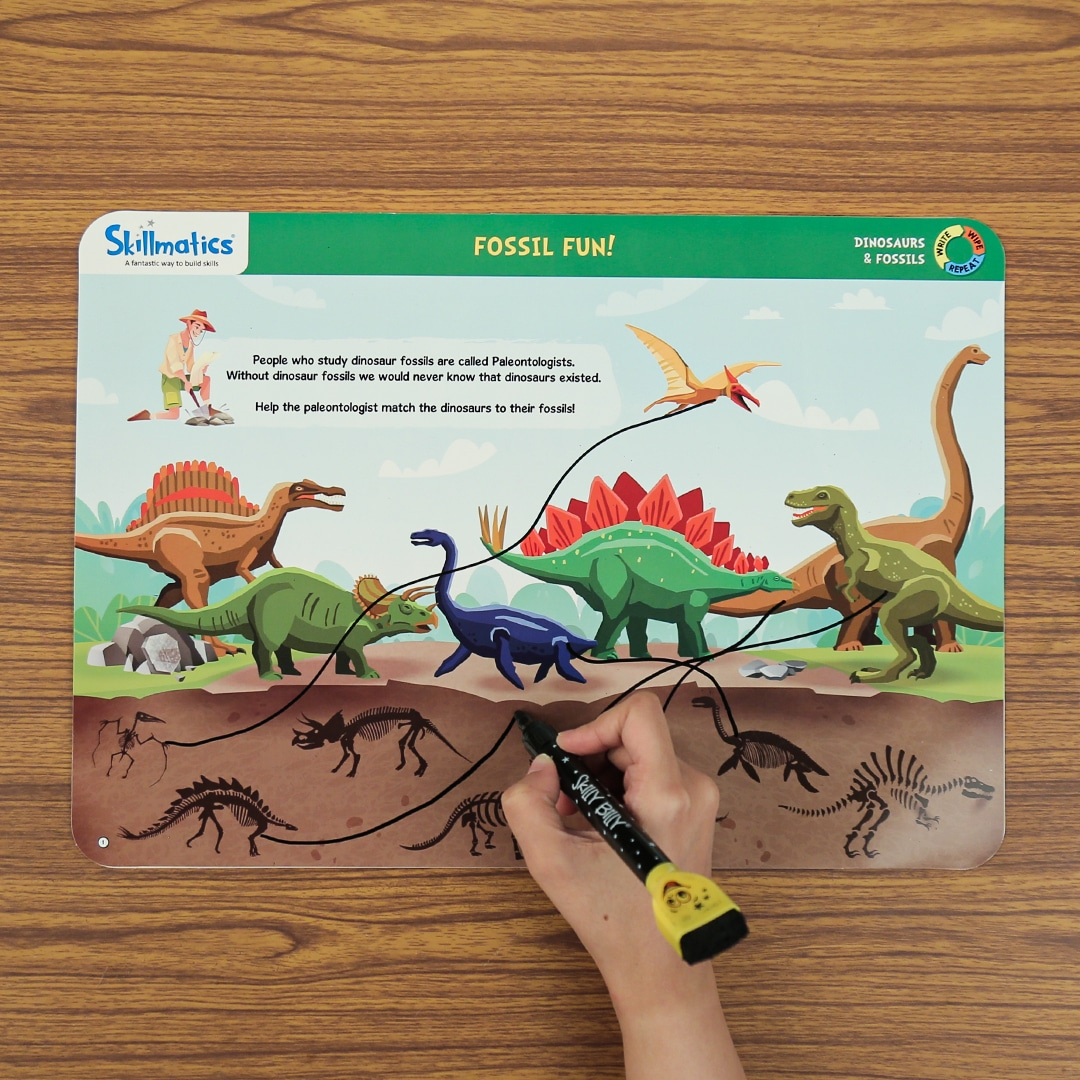 Skillmatics Educational Game Dinosaurs and Fossils (6-9 Years) | Gift & Learning Tool for Boys and Girls | Reusable Activity Mats