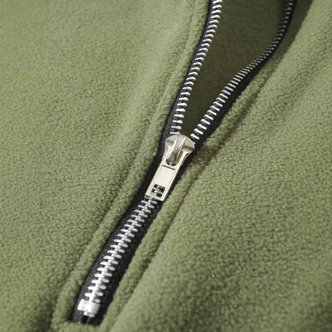 Men’s Slim-Fit Stand Collar Long Sleeve Pullover Fleece Coat Stay warm and stylish with this Men’s Slim-Fit Stand Collar Pullover Coat. Made from a soft polyester fleece blend, it offers both comfort and durability, making it a versatile choice for everyday wear.
